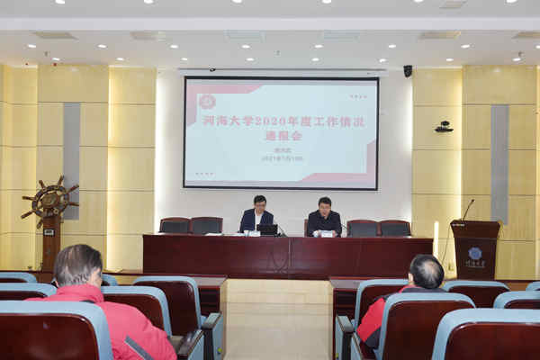 1月19日,河海大学召开2020年学校情况通报会,校党委书记唐洪武代表校党委向部分人大代表、政协委员、党外代表人士,部分党代会、教代会、工代会代表,离退休同志代表以及部分师生代表通报了2020年学校建设发展情况,副校长许峰主持会议。