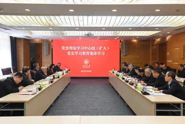 3月26日上午,河海大学召开党委理论学习中心组(扩大)党史学习教育集体学习,围绕“学史明理”专题开展深入学习研讨。校党委书记、校党史学习教育领导小组组长唐洪武主持学习。教育部党史学习教育高校第七巡回指导组列席了学习。