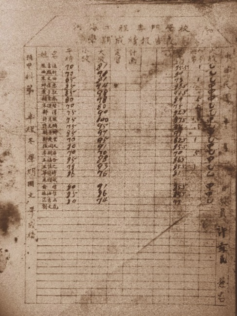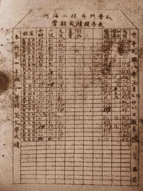 国文、英文成绩单(图片来源:南京大学档案馆(复印件))