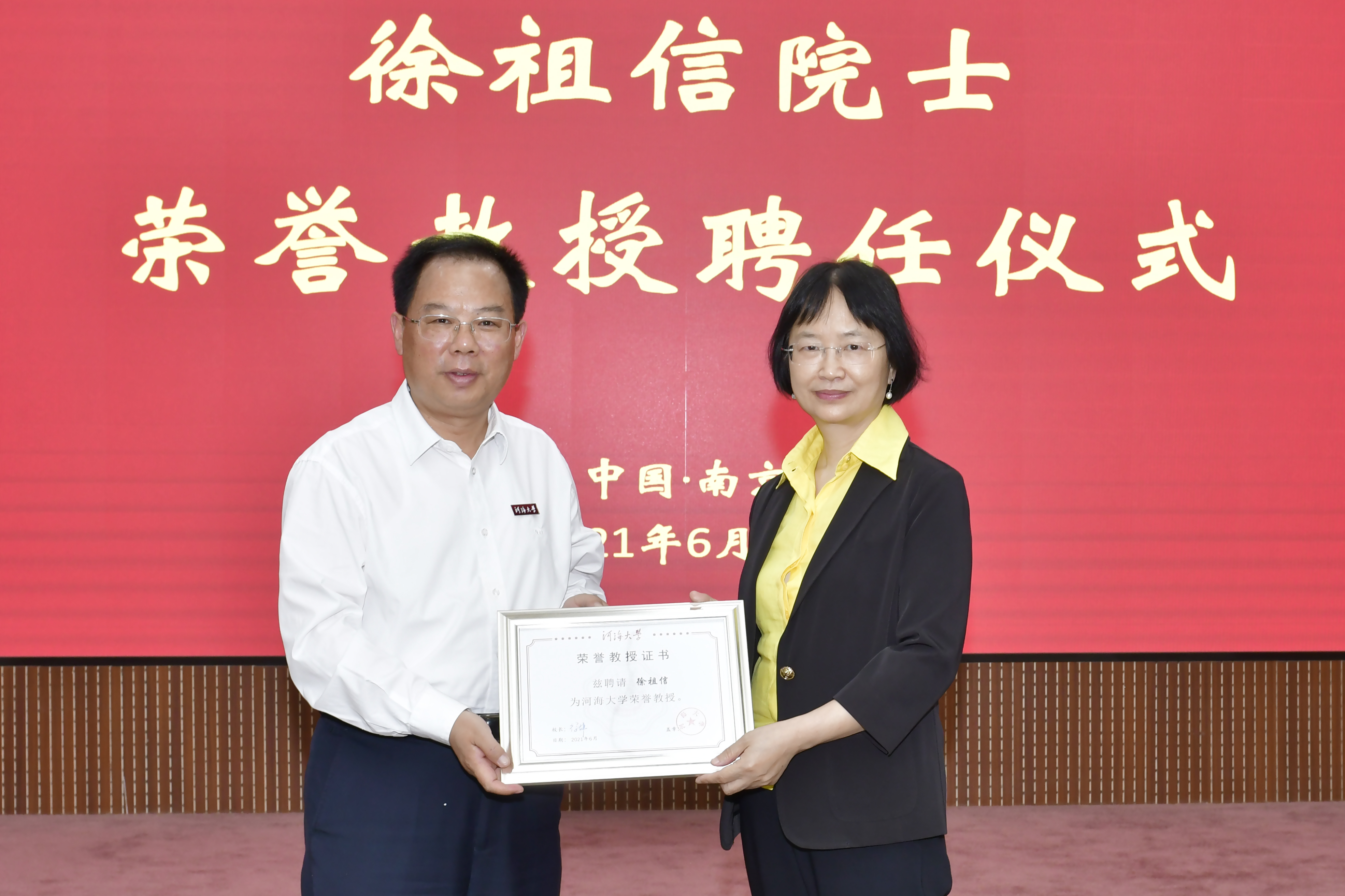 6月7日,我校举行中国工程院院士徐祖信荣誉教授受聘仪式。校党委书记唐洪武出席仪式并讲话,校长徐辉为徐祖信教授颁发聘任证书,常务副校长李俊杰主持聘任仪式。