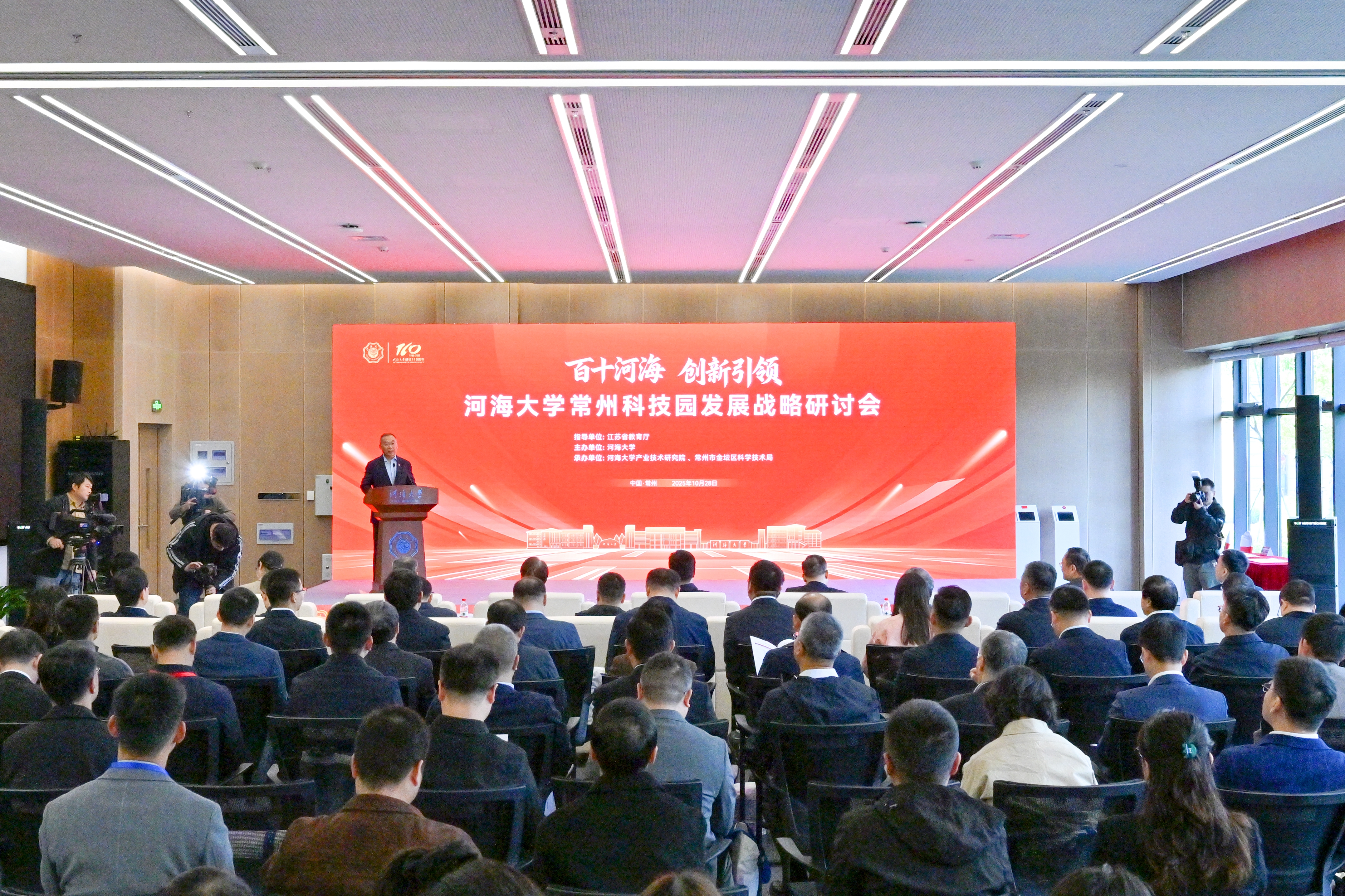 10月28日,作为建校110周年重要活动之一,“百十河海·创新引领“——河海大学常州科技园发展战略研讨会在常州校区举行。常州市委书记王剑锋,江苏省教育厅副厅长杨树兵,常州市政协副主席、教育局局长完利梅,江苏省教育厅科学技术与产业处处长韩叶祥,金坛区委书记陆秋明,金坛区人民政府区长胥亚伟出席会议。研讨会邀请了澳门科技大学校长李行伟,上海交通大学原副校长、校务委员会副主任张安胜,西北工业大学副校长张开富,华南理工大学副校长林艺文,西安电子科技大学副校长朱文凯,南京航空航天大学副校长徐正扬出席会议。河海大学党委书记杨桂山、校长郑金海、副校长邓成以及来自其他兄弟高校、合作企业、投资机构领导,校友企业家代表参加会议。