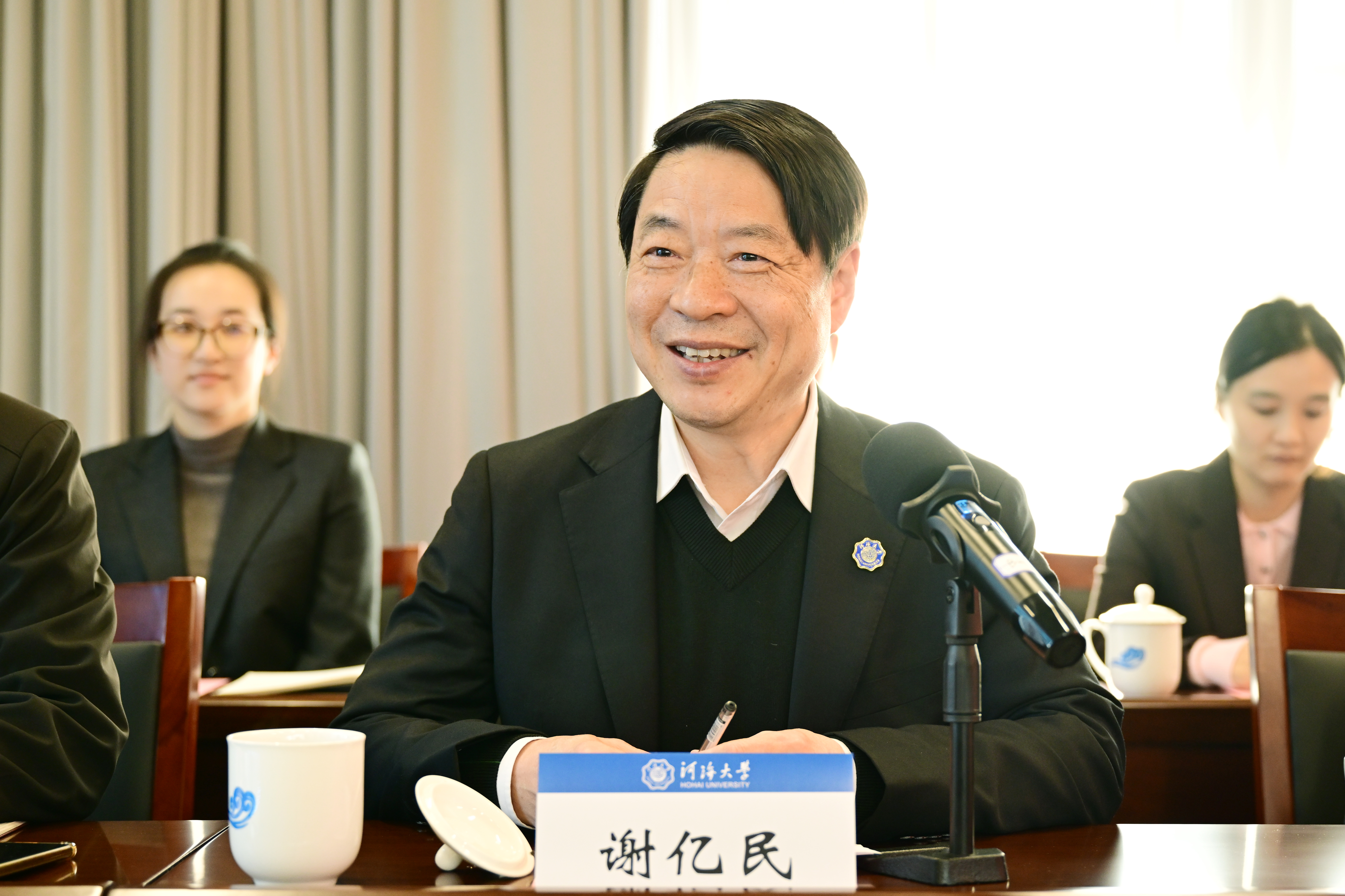 11月24日,河海大学举行谢亿民教授当选中国工程院外籍院士座谈会。新当选的谢亿民院士、校党委书记杨桂山、校长郑金海出席座谈会。